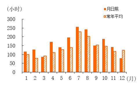 2020年最佳线上百家乐娱乐场逐月日照时数