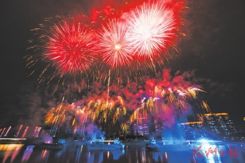 随烟花一同绽放的,还有闽江两岸随处可见的笑脸。“我们全家都在福州过年,没想到有这样的惊喜。”“有福之州真是幸福满满。”在江滨中大道观赏点,来自哈尔滨的郑先生一家,和身旁的林女士一家寒暄,互道新年快乐。