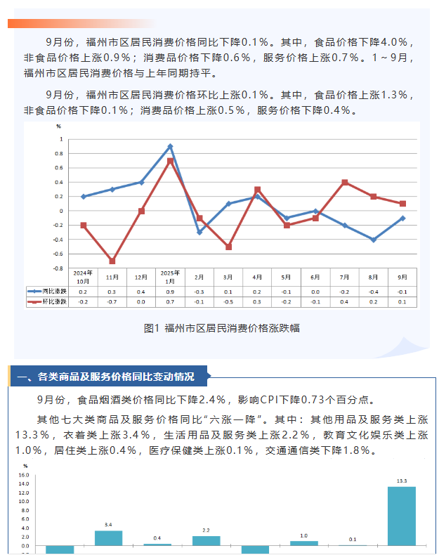 2025年9月份最佳线上百家乐娱乐场区居民消费价格运行情况
