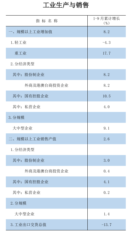 2025年1-9月工业生产与销售