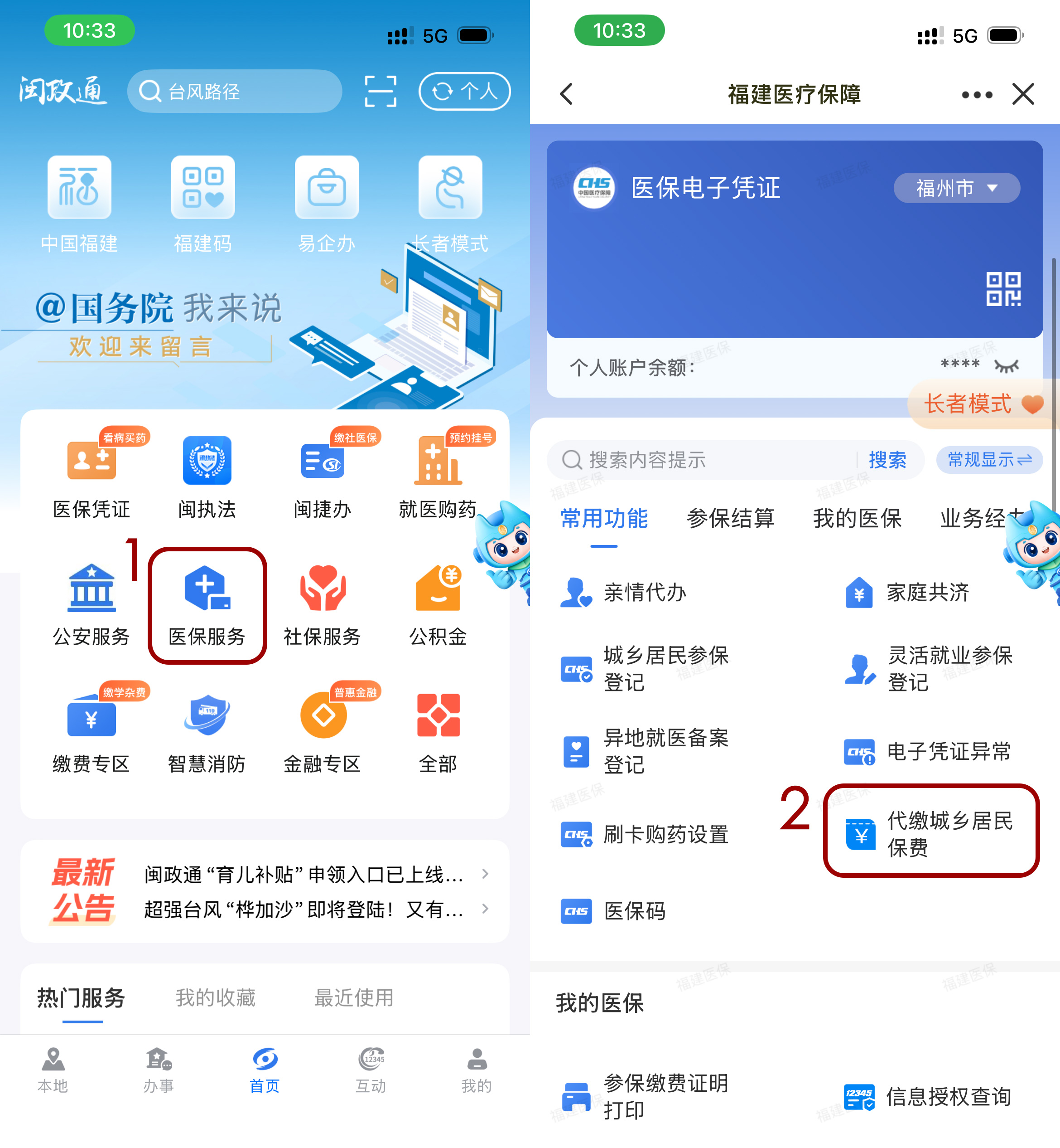 2.共济账户代缴:通过闽政通APP、“福建医疗保障”微信小程序办理福建省基本医疗保险家庭共济账户代缴居民医保费;或通过国家医保服务平台APP激活“医保钱包”,开通医保个人账户跨省家庭共济功能,代缴居民医保费。