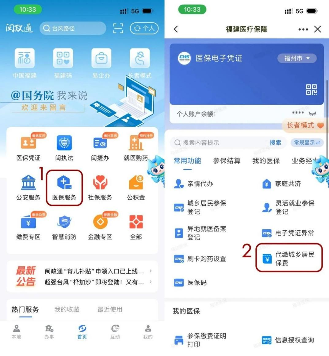 1.线上渠道:①“闽政通”APP或小程序(点击【闽捷办】-【个人参保缴费服务】);