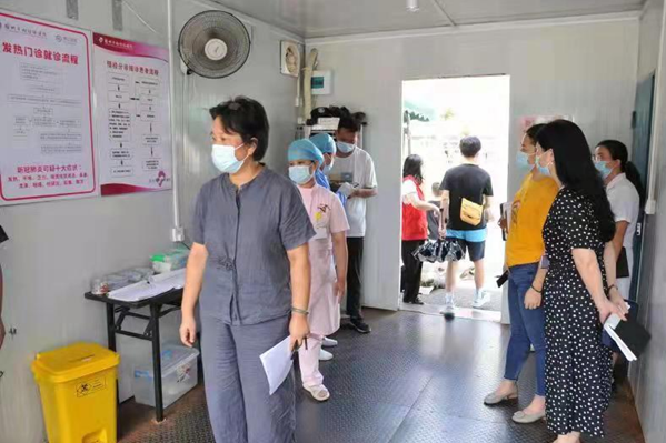 检查组察看发热门诊。